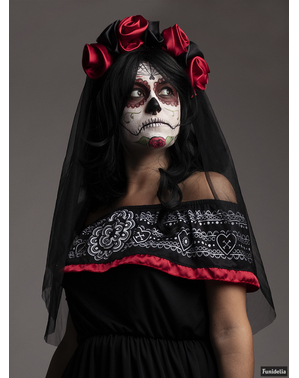 Primero te comentaré sobre las partes que tendrás en cuenta para definir tu disfraz de la Catrina, así sabrás que te puede servir en casa. Cuando tengas todas las piezas, será mucho más fácil enfocarse en un estilo.