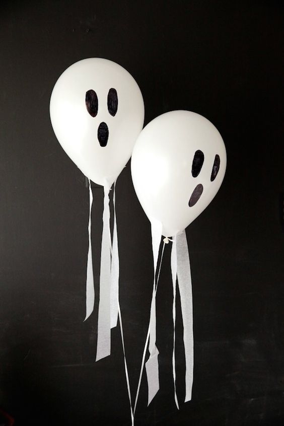 Los globos para una fiesta no pueden faltar, pues nada dibújalos como si fueran fantasmas o hazles caras de terroríficas que marquen la diferencia.