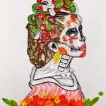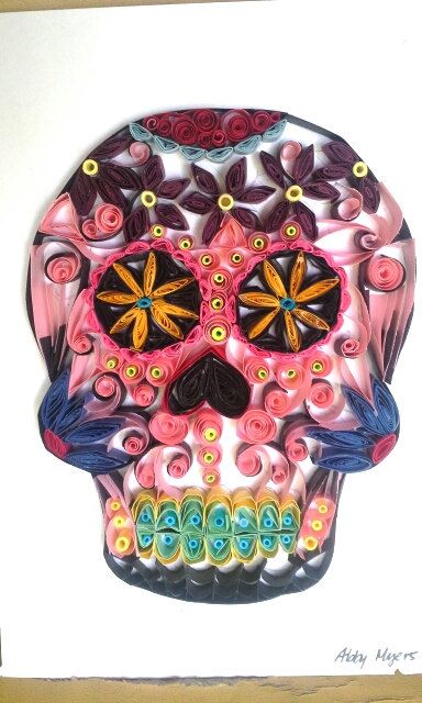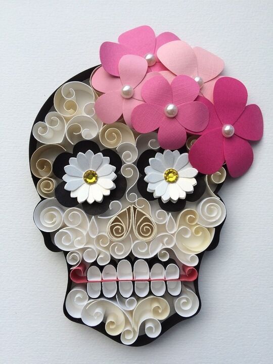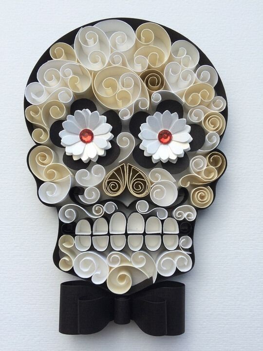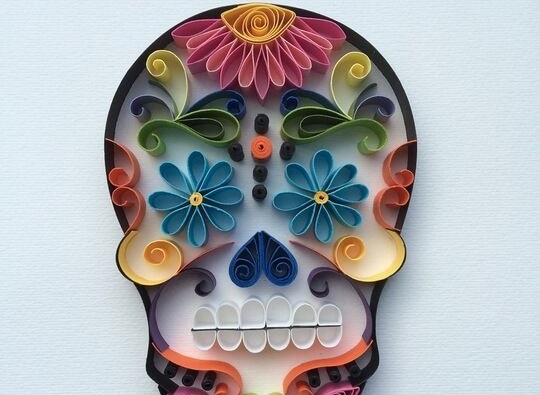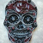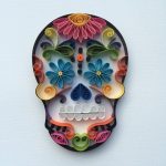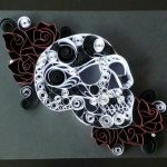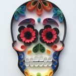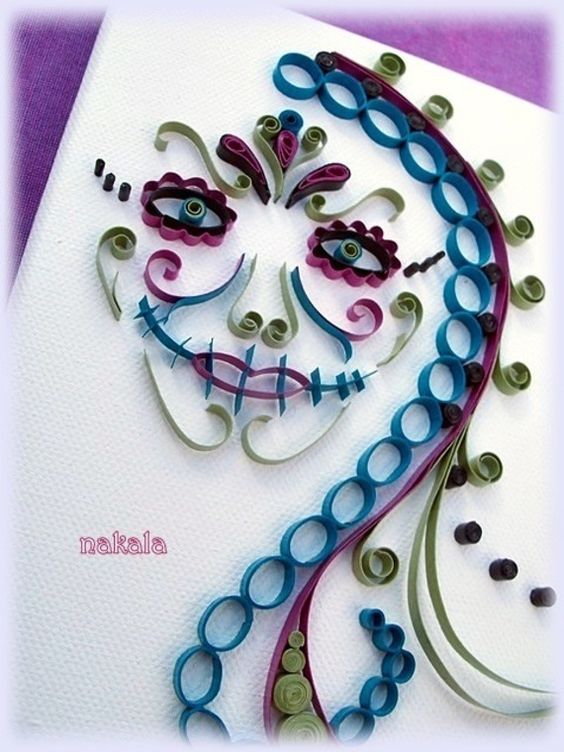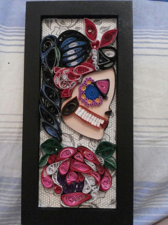 El filigrama (quilling en inglés), es una técnica donde hacemos figuras con tiras de papel. El uso de colores contrastantes y formas simétricas es una de las mejores recomendaciones. Te dejo con una colección de imágenes para que te inspires en hacer una de estas manualidades de Catrinas.