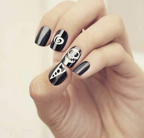 Pero seguimos ampliando las posibilidades. Llega la noche de fiestas y que mejor que las uñas pintadas para Halloween. Debes usar mucho los colores como el negro y el rojo. Puedes combinarlas con el color blanco y naranja.