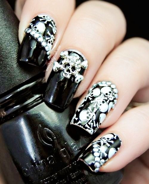 En este otro grupo podrás te dejo más fotos de calaveras en uñas, si quieres que se distingan como mexicanas, debes darle más colores adicionales. Siempre recomendar con esmaltes de buen brillo.