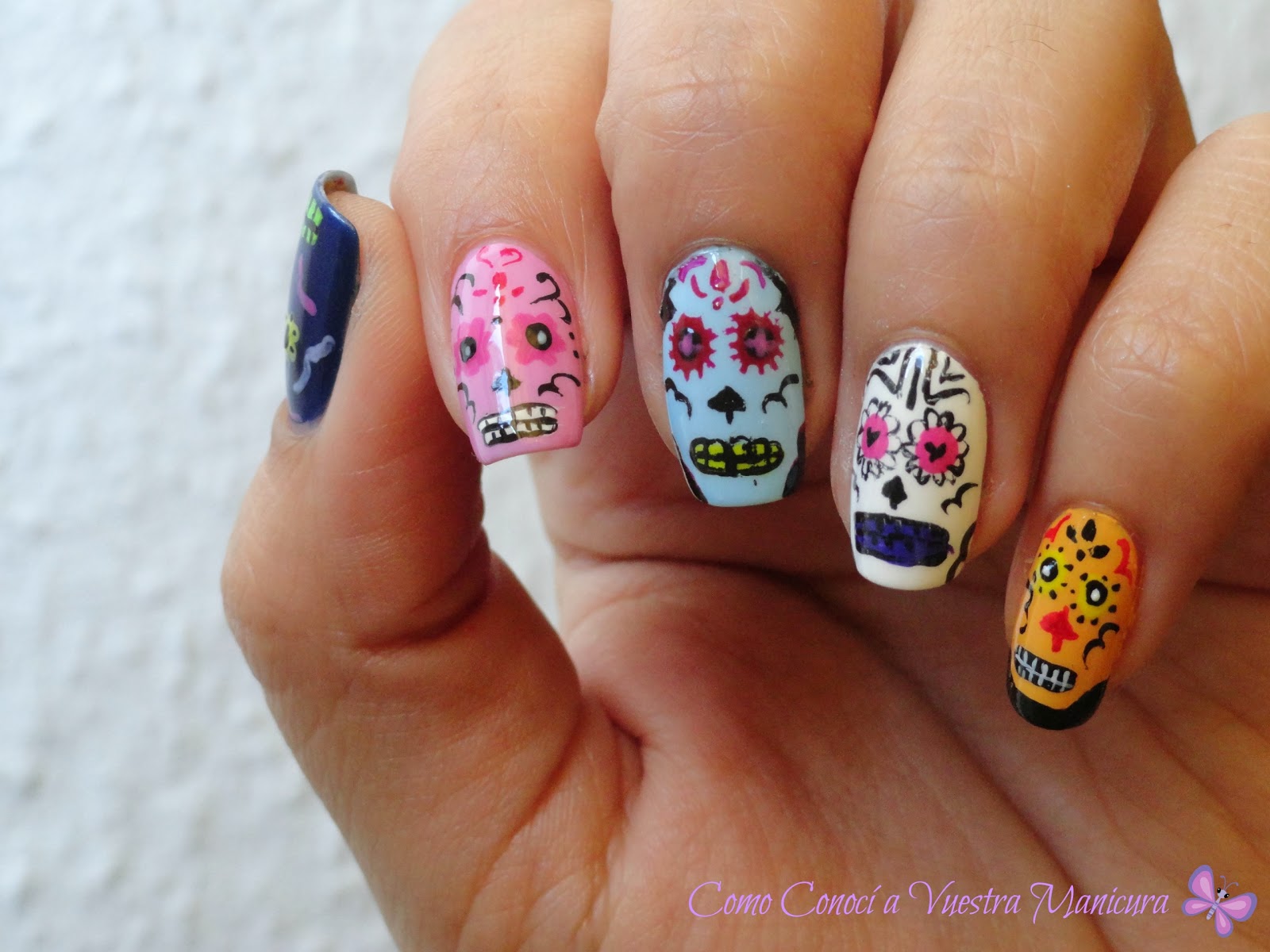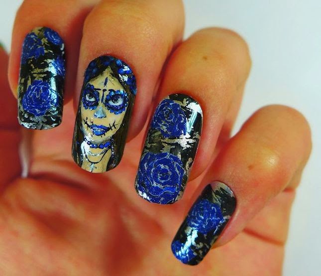 Los estilos y técnicas varían, pero las decoraciones de uñas con la presencia de las Catrinas son preciosas.