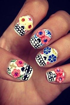 Ciertamente, estos diseños de uñas calaveras muy mexicanas, existe una amplia variedad de opiones. Puede ser por las celebridades de la Calavera Mexicana o sencillamente porque nos gustas estos dibujos. Observa estas ideas, me encanta como se ordenan mejor cuando las unes, quedan muy creativas.