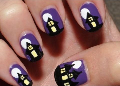 Te sigo mostrando geniales imágenes de uñas decoradas de Halloween fáciles de diseñar en casa. Me encanta la telaraña a relieve que ahí aparece. También las casa del terror. 😎